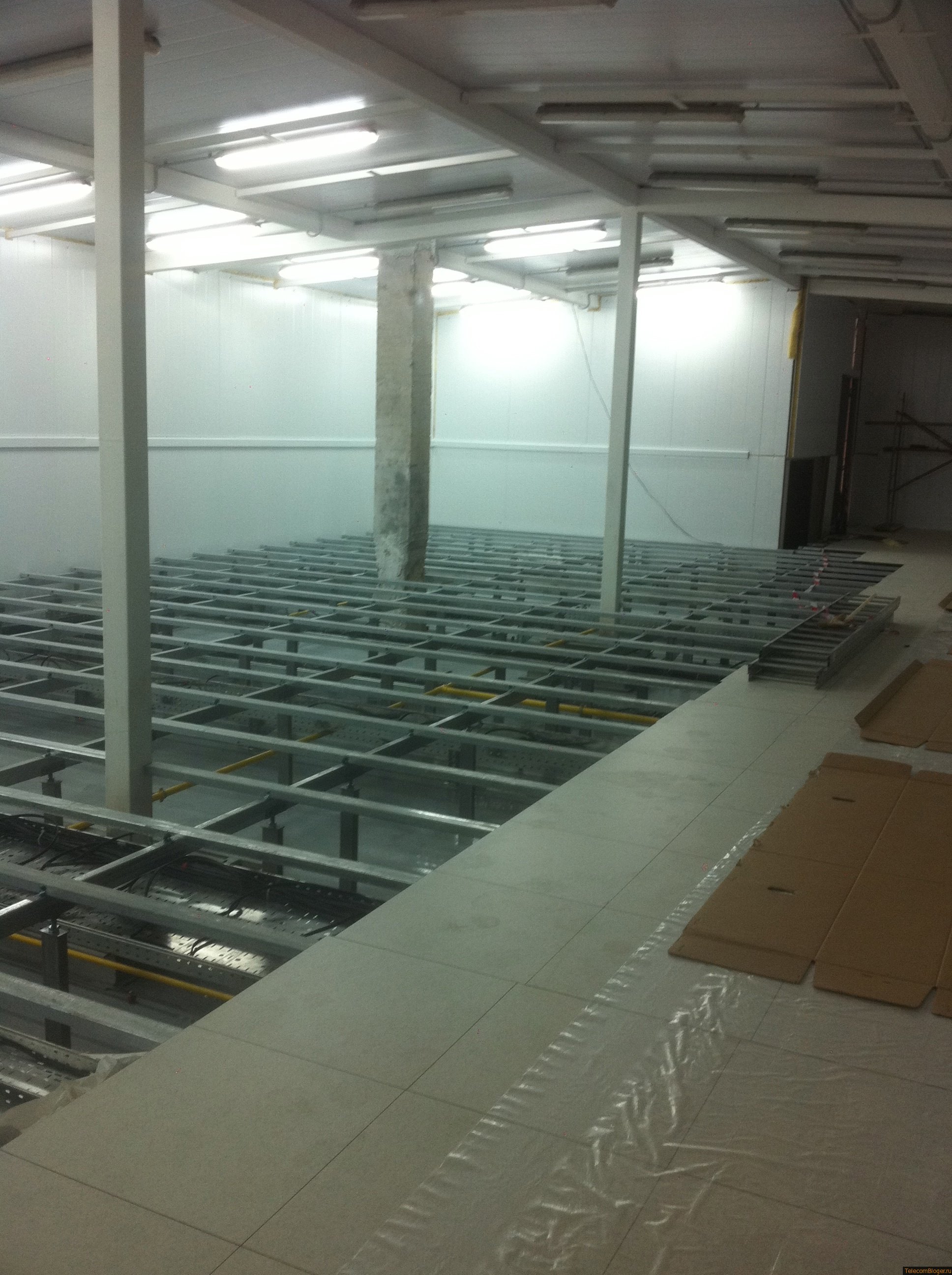 На этой неделе в ЦОД StoreData 2, начата установка плит фальшпола, ведутся работы по прокладке силовых кабелей и монтажу внешних и внутренних блоков системы кондиционирования.