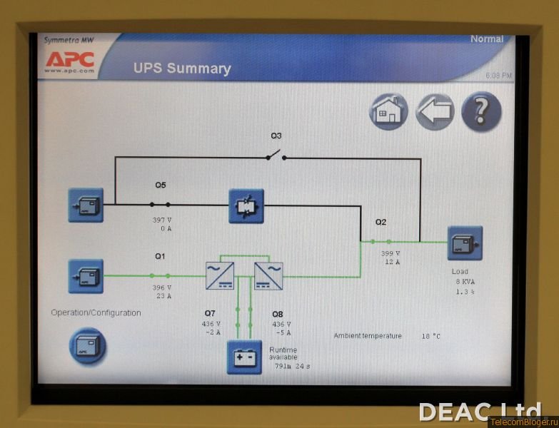 Систем резервного питания APC Symmetra MW с избытком хватает для обеспечения электроэнергией всей ИТ-инфраструктуры ЦОДа в случае отключения линии электропередачи, до момента переключения с основного источника электроэнергии на запасной (на дизельный генератор или альтернативную линию подачи электроэнергии).