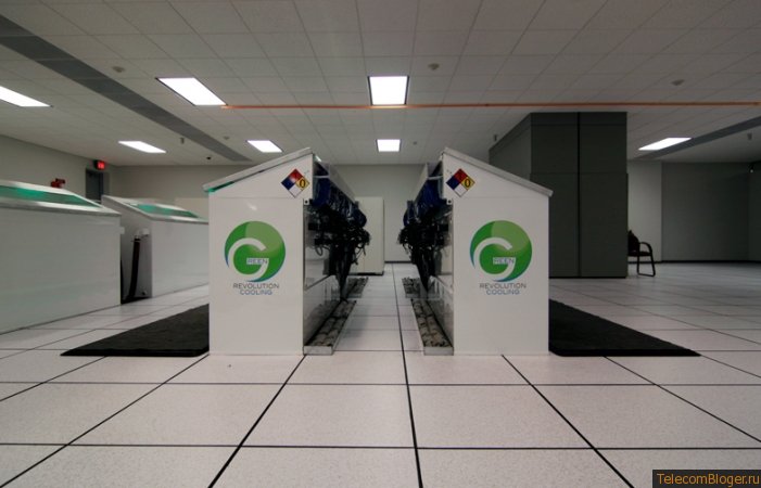 24 шкафа, установленных в Хьюстонском Дата-Центре CGGVeritas, являются крупнейшей инсталляцией Green Revolution Cooling на базе решения CarnotJet. Шкафы заполнены по 1 тыс. литров жидкого диэлектрика, сервера монтируются вертикально в слот корпуса шкафа. Температура перекачиваемой жидкости поддерживается с помощью насоса и теплообменника с использованием стандартного цикла водяного охлаждения.