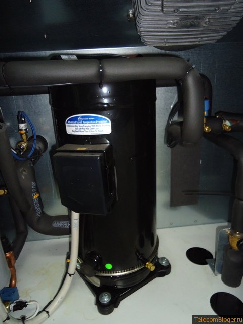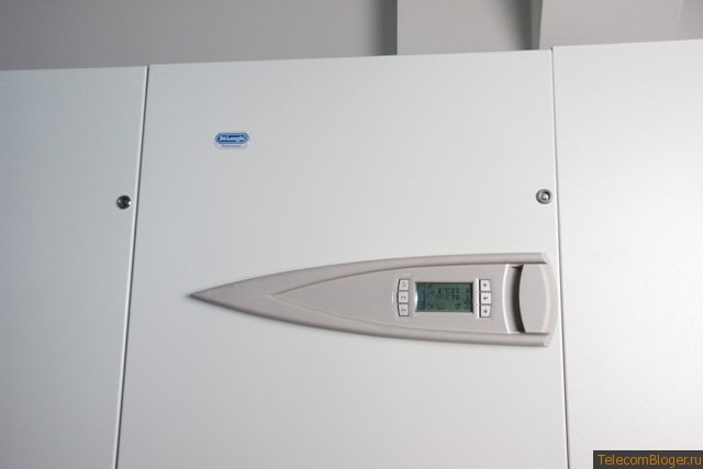 Комфортные условия для серверного оборудования по температуре и влажности обеспечиваются системой прецизионного кондиционирования итальянского производства De Longhi по системе N+2, холодопроизводительностью 79,7 кВт каждый (расход воздуха 27000 м3/ч) со встроенными пароувлажнителями. Наш дата-центр оснащен дренажный системой для откачки воды, в случае затопления, и системой отвода конденсата. Для выявления воды используются специальные датчики под фальшполом. Внешние блоки системы кондиционирования находятся во внутреннем дворе бизнес-центра. Они расположены в два этажа на специально сооруженной площадке. Нормативное расстояние до стены в 0.8 метра позволяет сотрудникам проводить необходимые профилактические работы с оборудованием в комфортных условиях.
