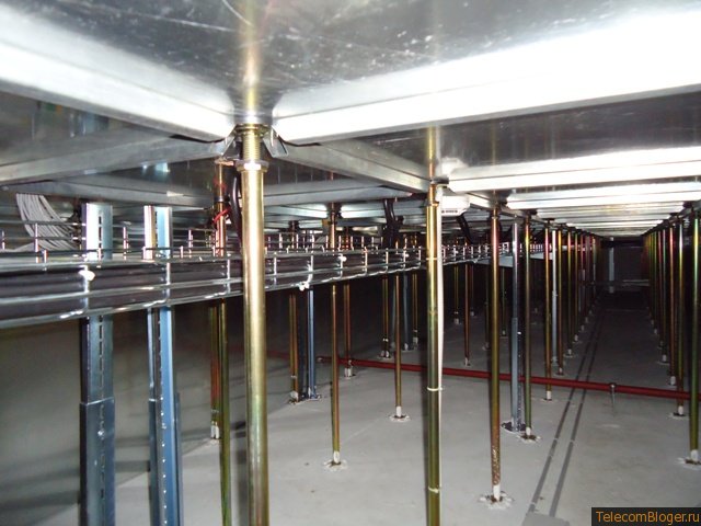 Фальшпол марки Jansen, который применяется в нашем дата-центре, обладает нагрузочной способностью 1.5 тонны на квадратный метр, но даже при этом все тяжелое оборудование стоит на собственных рамах. Все коммуникации, необходимые для жизнедеятельности ЦОД находятся под фальшполами. Плиты устанавливаются в стык, без крепления, поэтому, при необходимости, к коммуникациям обеспечивается быстрый доступ. Высота фальшпола от основания до финишного покрытия в Дата-центр TEL составляет один метр. Дополнительно отметим, что полы в нашем ЦОД соответствуют всем нормативным требованиям и документам.