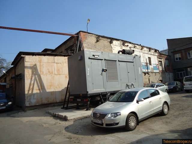 Дизель-генератор, изготовленный МНПО «Энергоспецтехника» имеет в своей базе генератор французcкой фирмы Genelec и использует двигатель марки MTU Friedrichshafen GmbH. Эта компания более 30 лет входит в состав DaimlerChrysler AG и является признанным мировым лидером в производстве дизельных двигателей для применения в различных областях промышленности, техники, транспорта и энергетики. Местонахождение агрегата на парковке бизнес-центра удобно для подъезда грузовых машин и делает возможной дозаправку дизель-генератора. Топлива в нем достаточно для 8 часов работы в при полной загрузке дата-центра. Каждый месяц проводится плановое тестирование системы автоматического ввода резерва и запуска ДГУ.