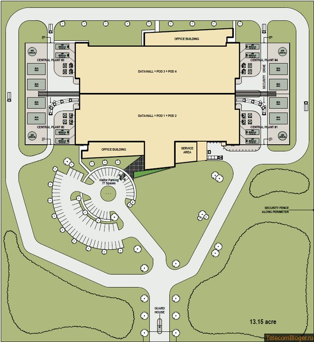 Сообщалось, что в конце прошлого года все было готово к строительству комплекса в Пфлюгервилле. Были запланированы пять 10-мегаваттных дата-центров, первый из которых должен быть запущен уже в конце 2012 года.