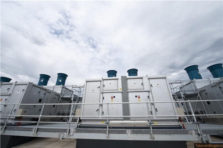 Для охлаждения оборудования в ЦОД используется воздух температурой около 24 градусов. Температура воздуха в «горячем» коридоре может достигать 32 градусов.