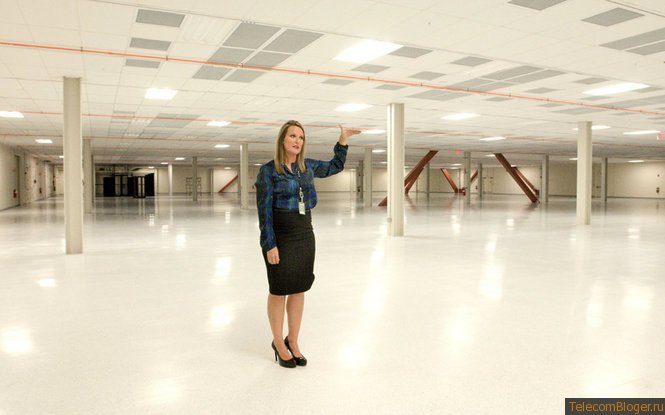 Дженни Карнс, которая проводила экскурсию по новому «оптовому» центру обработки данных 27 сентября, в день его торжественного открытия, описывала огромный пустой машинный зал, ожидающий клиентов дата-центра, как «100-процентно неизрасходованный потенциал».