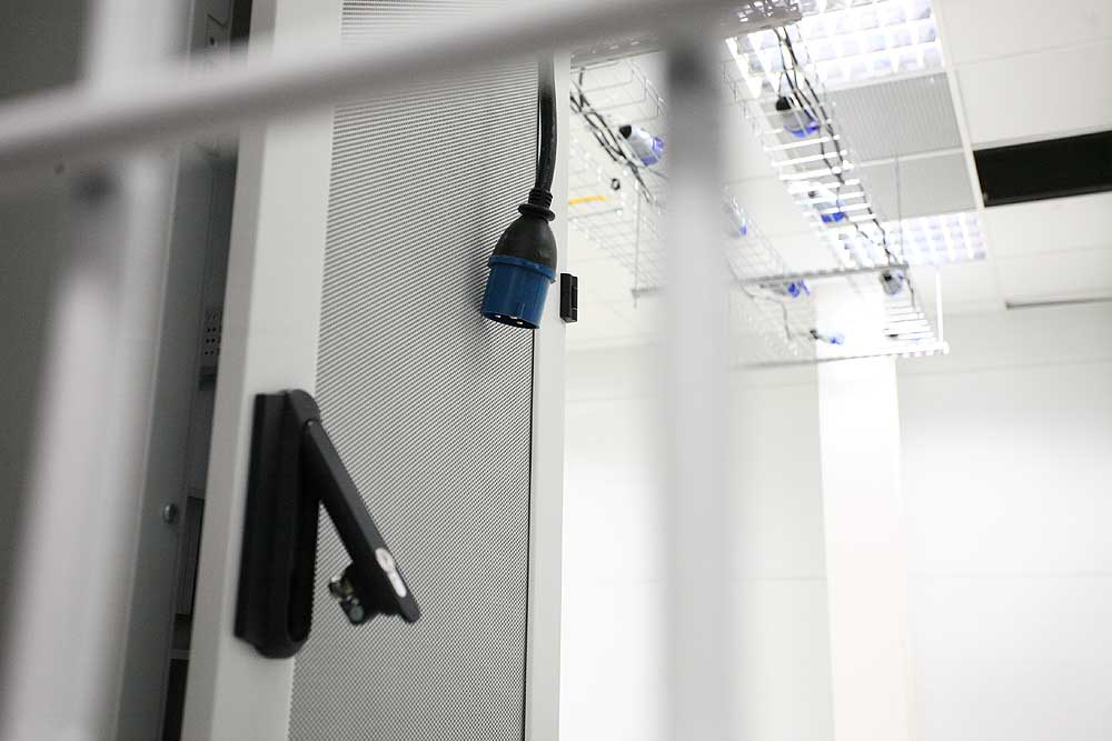 Серверные стойки. За перфорированным фальш-потолком - коммуникации и инженерные системы.
