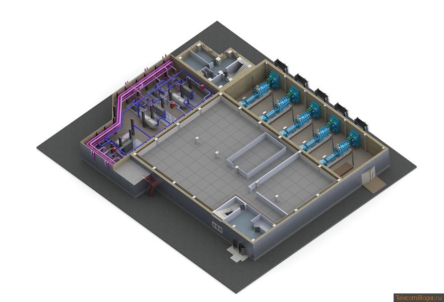 Насчет полезной мощности что-то не так. Имелась ввиду общая? Неясно, где стоит электрораспределительное оборудование. Сеператоры поставить за насосами — это надо быть весьма далеким от проектирования человеком. Сетчатый лоток в машзалах недопустим согласно TIA-942. Все генераторы в одном помещении — туда же. Выходит, очередная отсебятина с претензией на супернадежность. ДЦ убивается одной небольшой аварией.