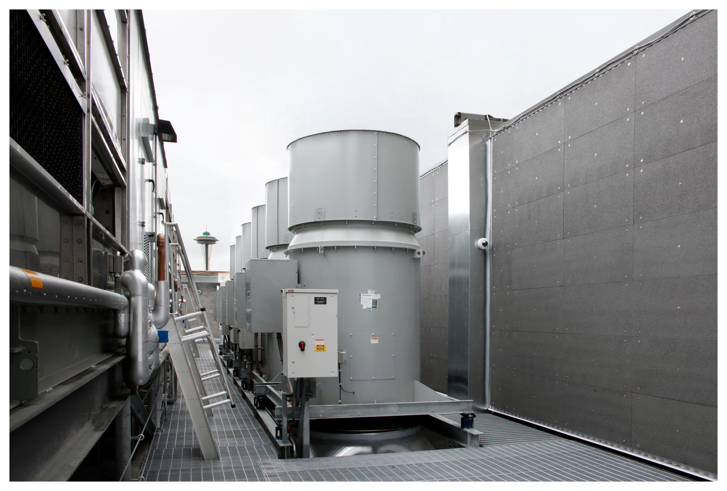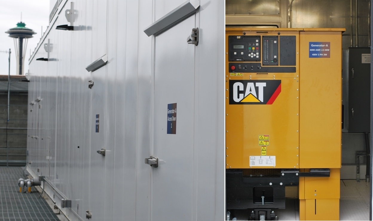 ДГУ расположились на крыше здания, с которой открывается отличный вид на самую узнаваемую достопримечательность на северо-западе тихоокеанского побережья США и символ города Сиэтл — Спейс-Нидл (Space Needle). Генераторы находятся внутри специального защитного корпуса, который позволяет минимизировать негативное воздействие стихийных бедствий и ограничить уровень шумового загрязнения от ДГУ.