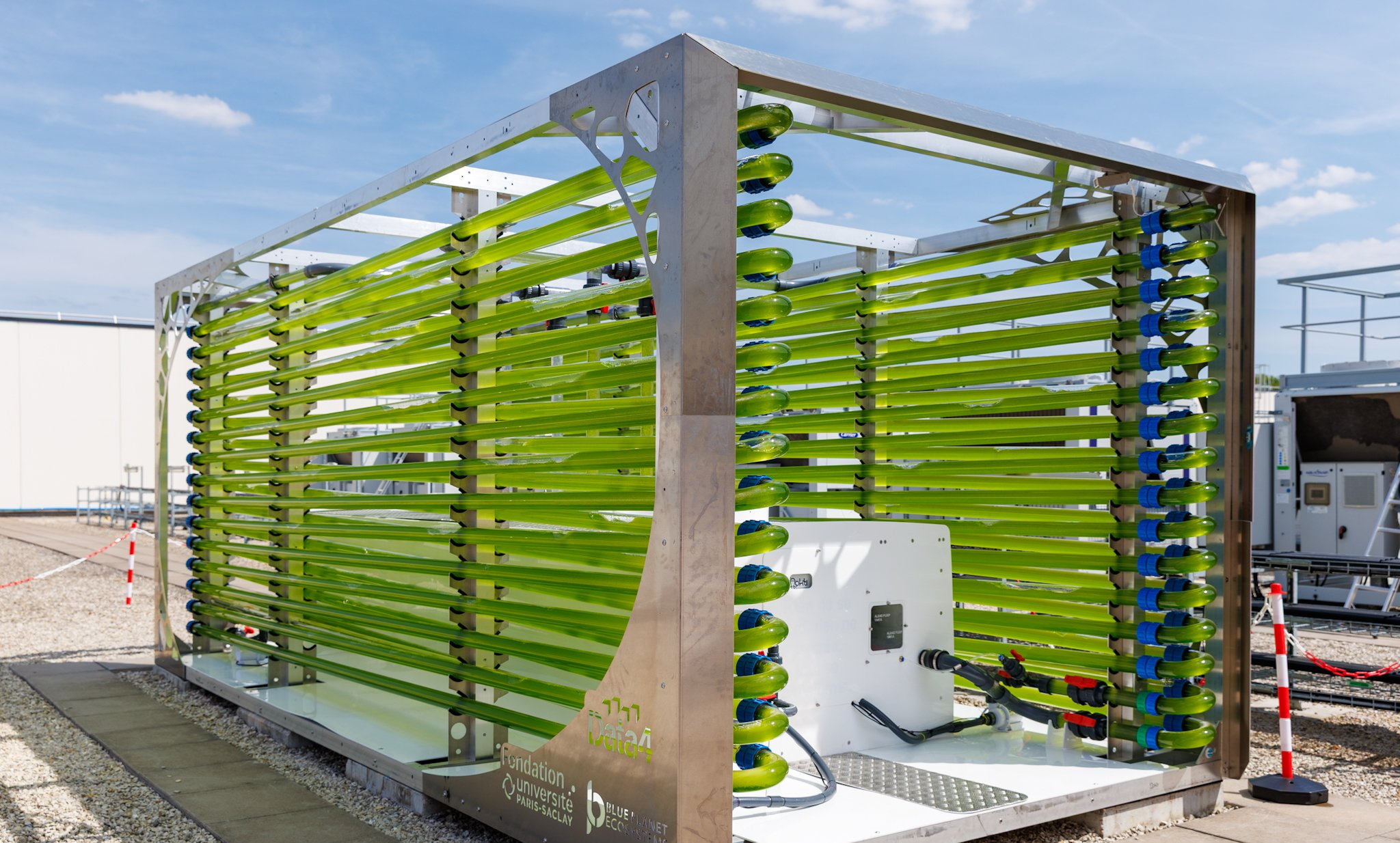 Проект реализован совместно с Фондом Университета Париж-Сакле. Демонстрационная система установлена на кампусе ЦОД Data4 в парижском пригороде Маркусси. Модуль размещен на крыше и работает в замкнутом цикле, исключающем риски для системы охлаждения серверов. Тепло и вода из последней направляются в агро-установку, куда также подаётся CO₂.