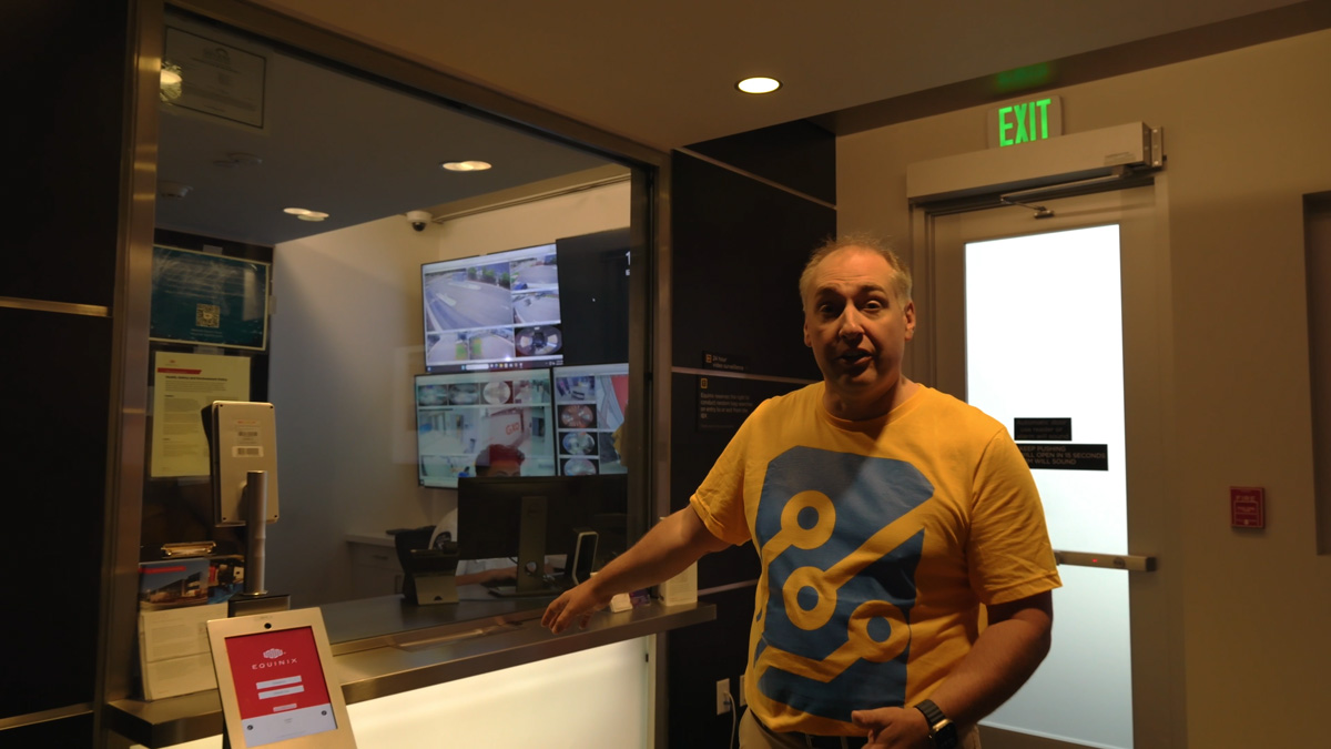 Equinix использует многоуровневую систему обеспечения физической безопасности. Периметр защищён высокими ограждениями, сложной системой видеонаблюдения и охраной. Для доступа внутрь зданий требуются идентификационные ключ-карты и прохождение биометрической аутентификации. Далее используются шлюзы (Mantrap), где одновременно может быть открыта только одна дверь.