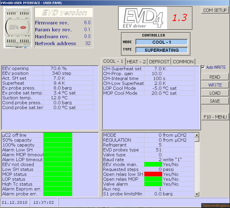 Благодаря компактному и информативному дизайну перед глазами видна сразу вся картина работы электронного ТРВ и динамика её изменений во времени.