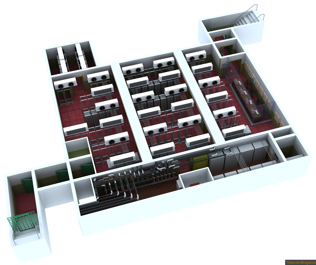 1. Основная проблема размещения в убежищах — низкая высота потолков — около 3 метров, а под балками и того меньше, пусть 2,6 будет. Весьма трудно правильно организовать схему охлаждения. ну и тут в общем то видно что реализовали работу на объем, с эффективность будут вопросы.