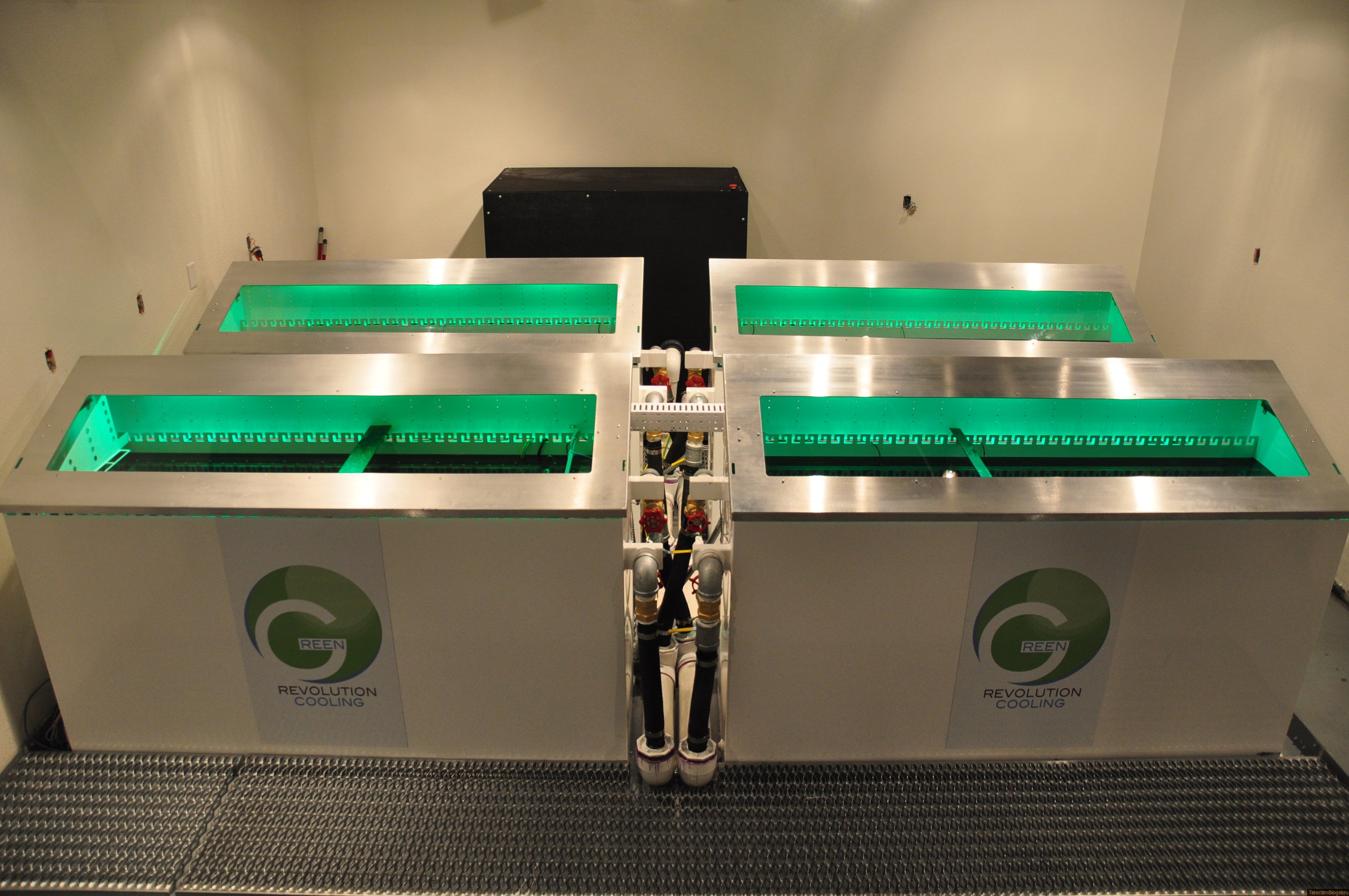Специалисты по охлаждению зон высокой плотности Green Revolution Cooling, опубликовали фотографии и видео нескольких серверных инсталляций, где оборудование погружено в жидкость напоминающее минеральное масло. Стартап из Остина штат Техас, показал, что его замкнутая система охлаждения может избавить от необходимости использования прецизионных кондиционеров и чиллеров.