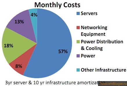 Здесь представлена круговая диаграмма из презентации Гамильтона, которая демонстрирует резкое снижение стоимости ежемесячных расходов инфраструктуры Amazon: