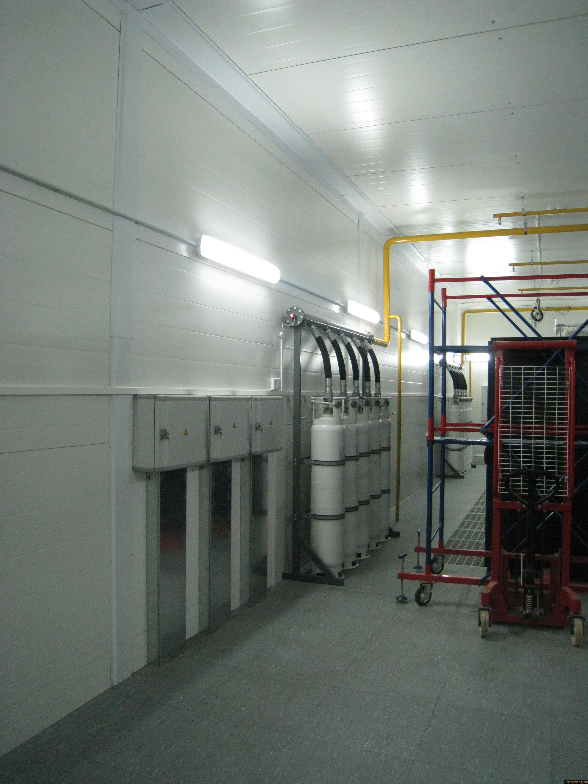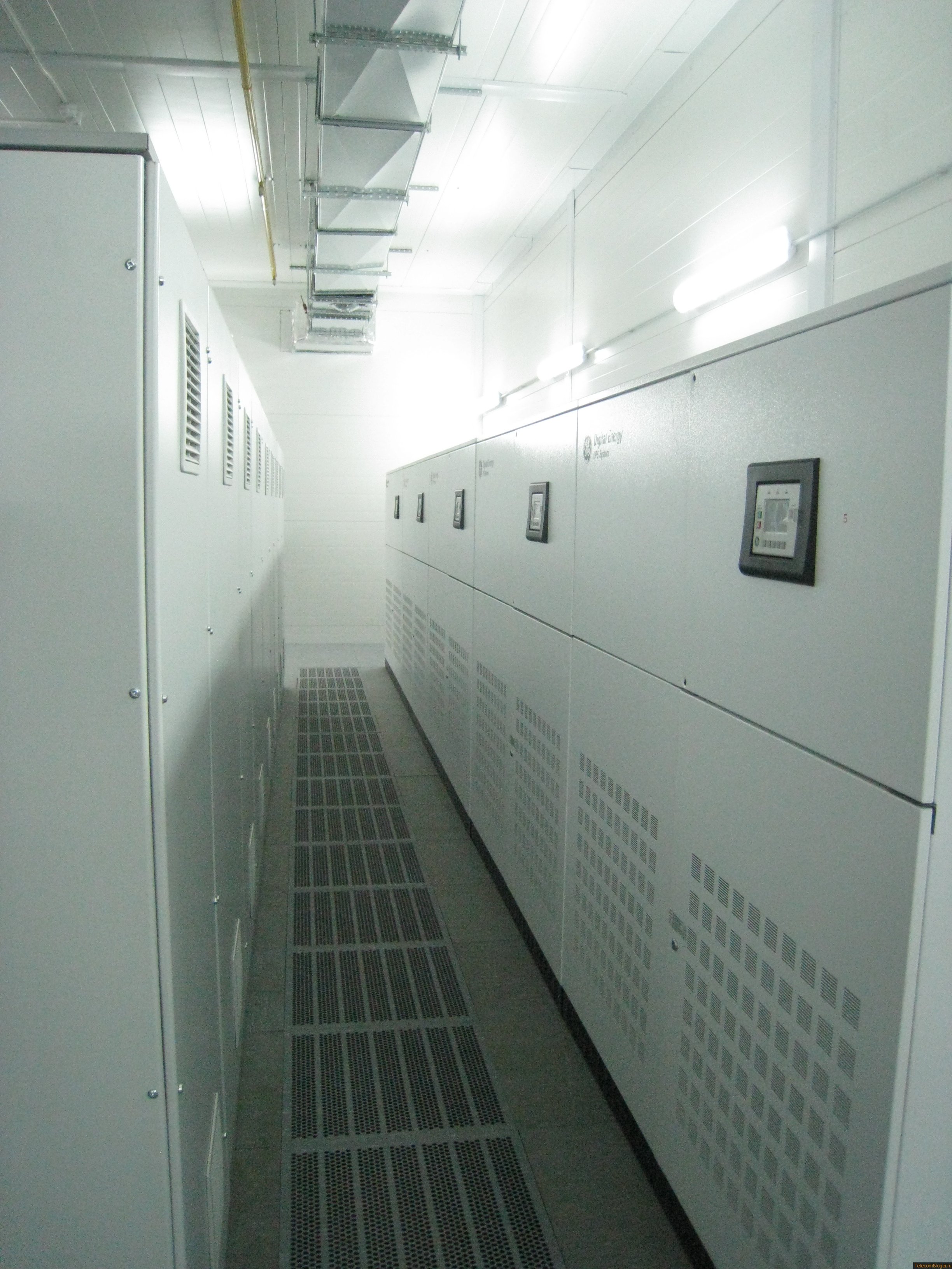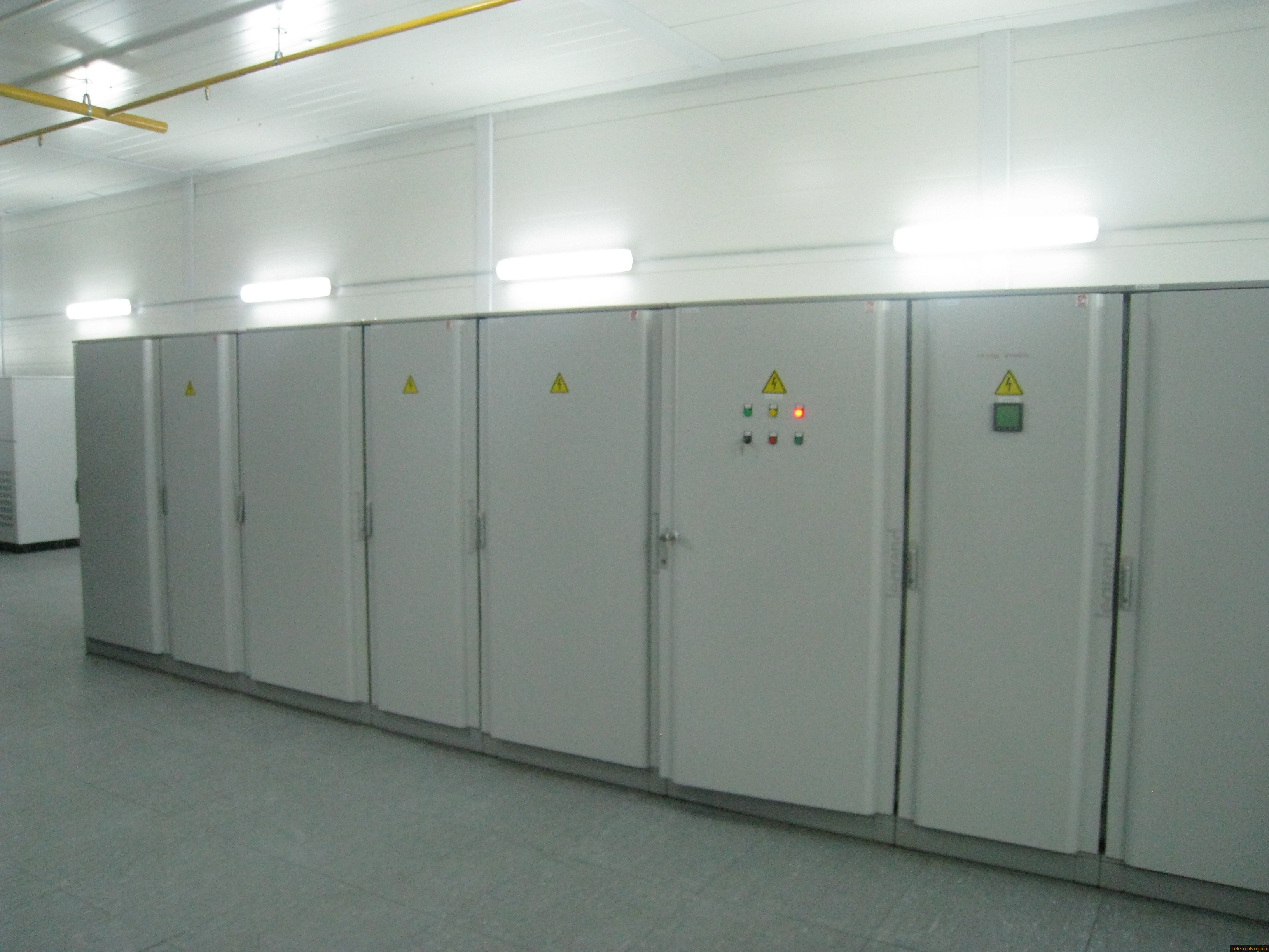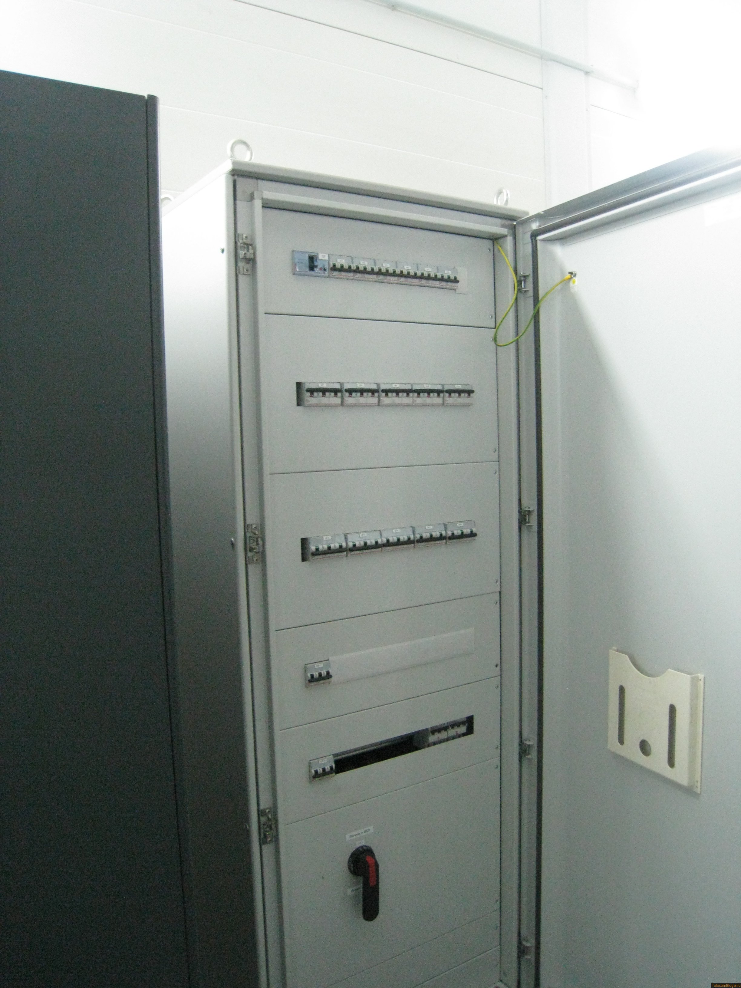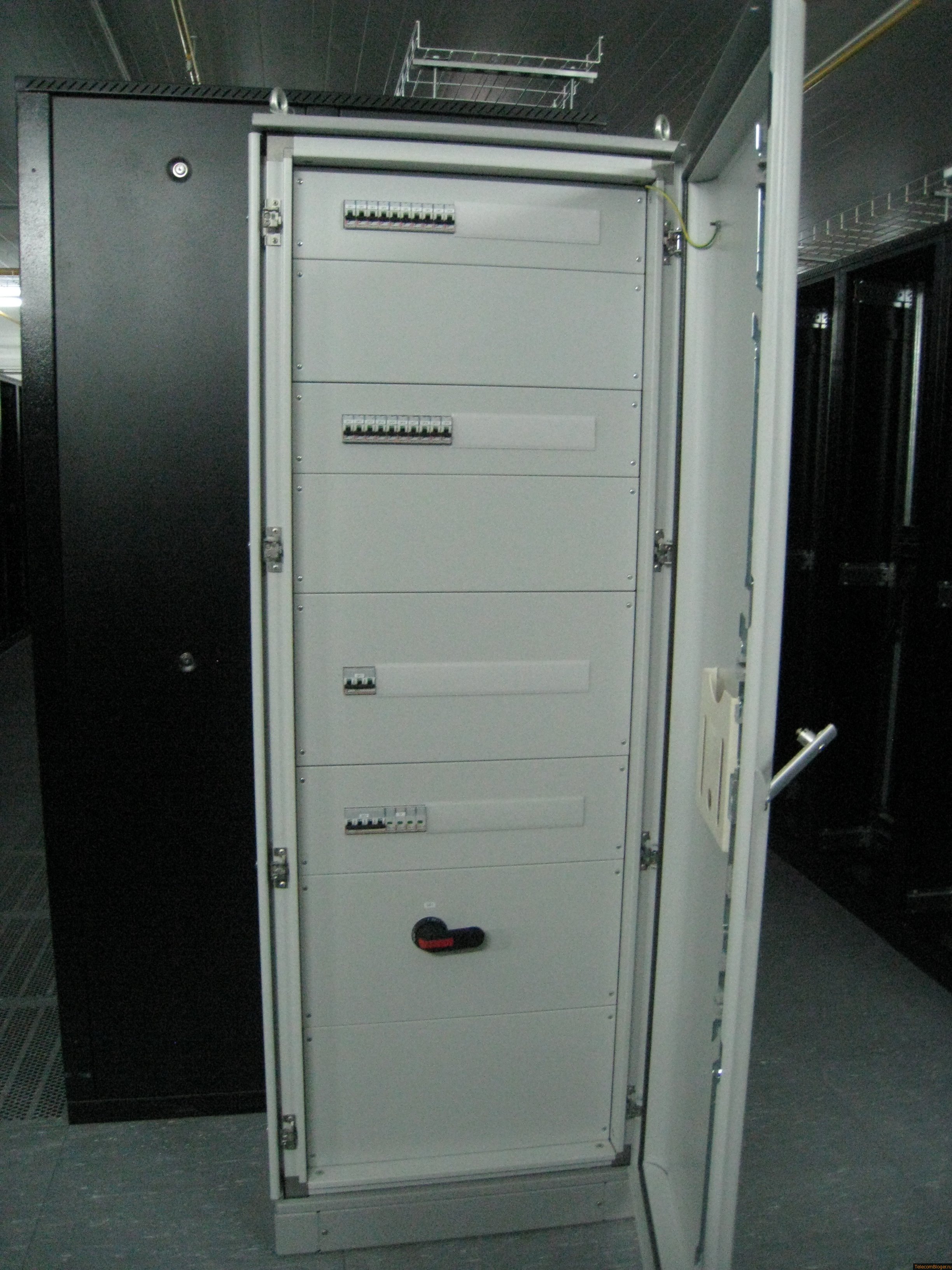 В начале и в конце каждого ряда стоек, установлены шкафы распределения гарантированного питания