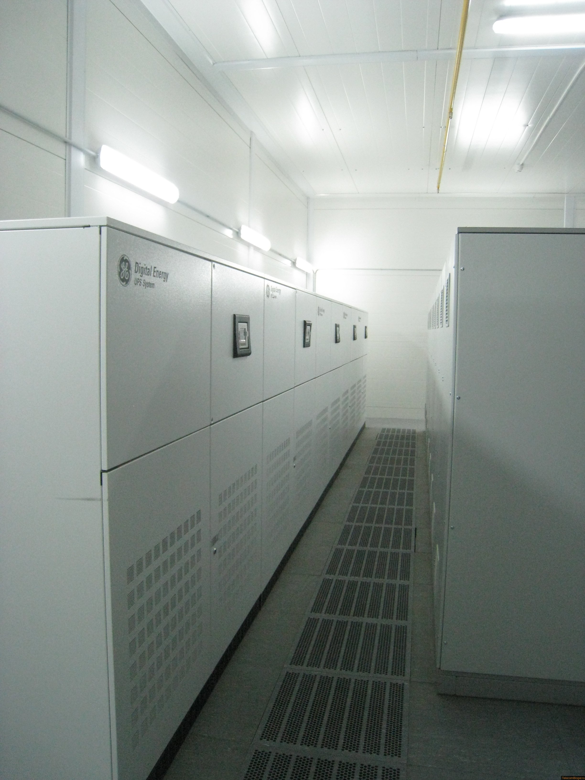 Каждая стойка подключена по двум лучам от разных групп источников бесперебойного питания (ИБП)